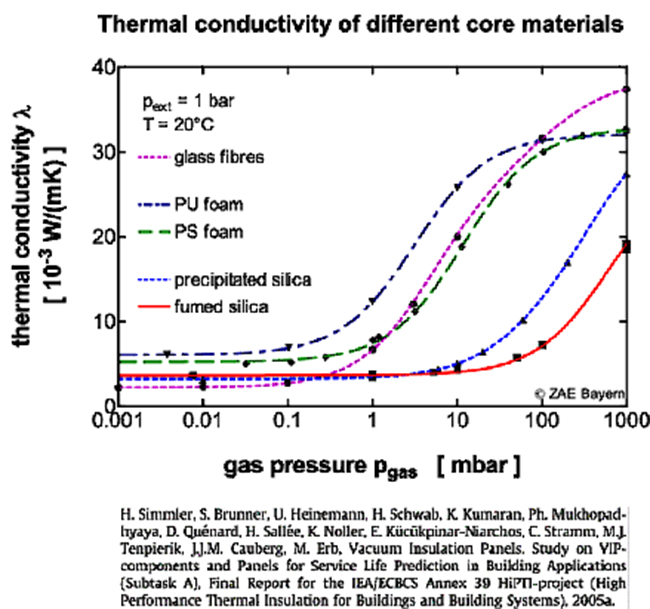 | Core material | Initial pressure | Pressure for 8 mW/m.K |